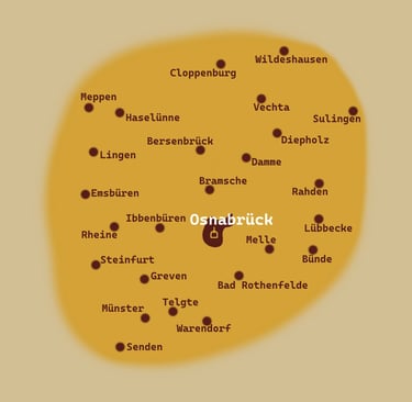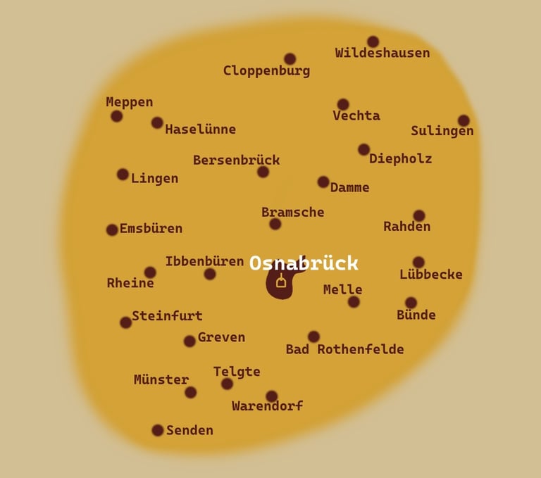 Ich fahre einen Umkreis von 100 km rund um Osnabrück an.