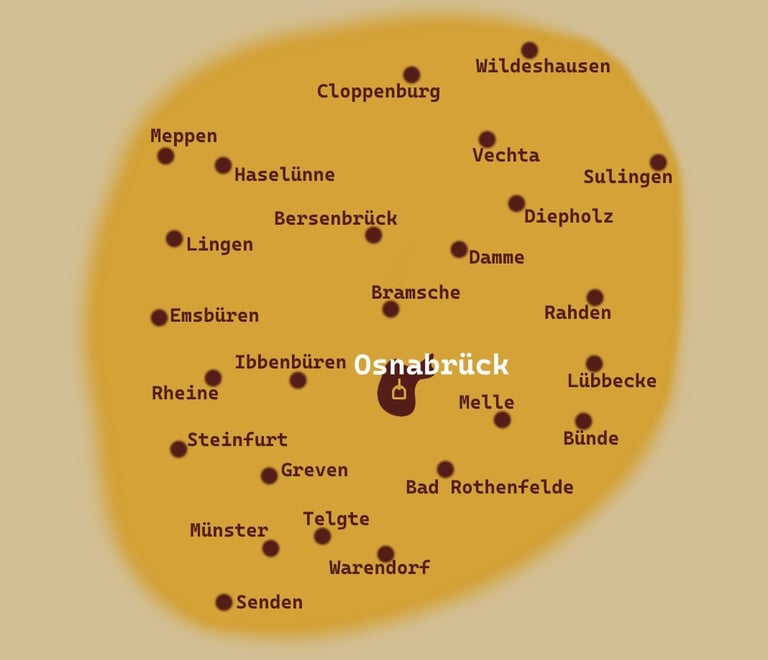 Ich fahre einen Umkreis von 100 km rund um Osnabrück an.